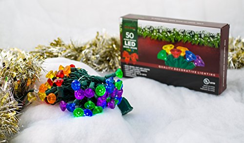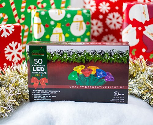 Stay Off the Roof Super Bright LED Christmas Lights Set - Multicolored - Jewel Cut, 50-Piece - 13.25 ft Lighted Length, Connect up to 45 Sets - Holiday Pack