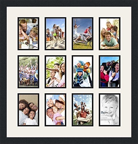 ArtToFrames Collage Photo Frame Double Mat with 12 - 4x6 Openings and Satin Black Frame