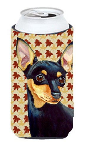 Min Pin Fall Leaves Portrait Tall Boy Beverage Insulator Beverage Insulator Hugger
