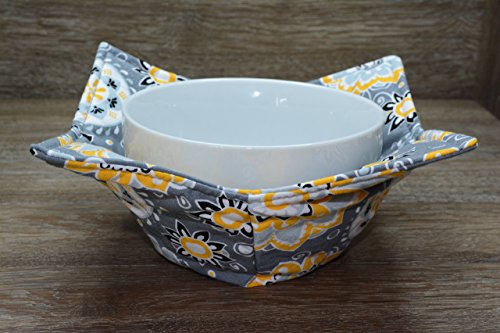 Product Description Microwave cozy set includes 1 small bowl cozy (Approx 6.5" sq), 1 medium bowl cozy (Approx 8" sq), 1 dinner plate cozy (Approx 10" sq.) The dinner plate cozy can also be used for round casserole dishes and the small size is great for coffee mugs! These microwave cozies are the perfect solution to handling super-hot dishes. Cooking and reheating food in a dish cozy makes life so much easier! Place your microwaveable dish inside the bowl cozy and put the whole thing in the microwave to heat. To take the bowl out, you simply grab the corners of the cozy. We found that our kids can now get their dishes out of the microwave safely. Cozies will also protect your fingers from the cold when holding a bowl of ice cream and are great for protecting your table. You can also use a cozy placed on top the dish you are microwaving to help steam food. MATERIALS: * 100% cotton fabric * 2 layers of 100% cotton batting * 100% cotton thread Please be advised: Bowl cozies must only be used in microwaves with a rotating base. To avoid scorching or burning, please make sure cozy freely rotates in your microwave. Never leave microwave unattended. Make sure cozy is clean with no pieces of food attached. Do not microwave cozy for more than three minutes. Cozies can be machine washed on delicate cycle. Reshape and allow to air dry for best results. Please let us know if this is a gift, and we will ship without a packing slip enclosed! #bowlcozy #microwaveable #handmadeatamazon #hot4handmade #buyhandmade 0