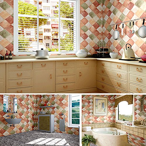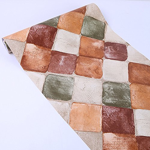 SimpleLife4U Colorful Brick Stone Shelf Drawer Liner Removable Contact Paper Countertop Wall Sticker 17.7inch by 9.8 Feet