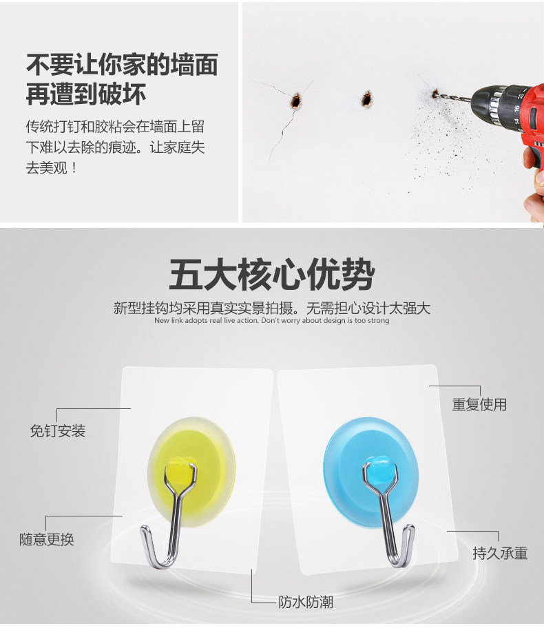 吸盘式无痕强力粘钩宿舍卫生间钩子收纳神器挂钩创意吸壁承重黏钩