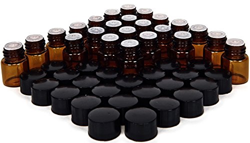 24, Amber, 1 ml (1/4 Dram) Glass Bottles, with Orifice Reducers and Black Caps