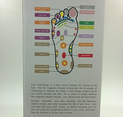 Product Description MAG-INSOLE A special configuration stimulates reflex points on the soles of your feet. When those points are stimulated through massage, your whole body feels terrific. 16 magnets per pair. Size Large. Item #1025 $26.00 Size Small. 0