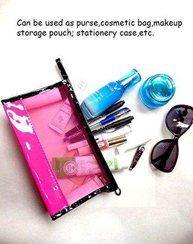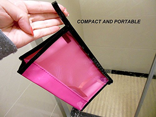 - ✈Durable & Portable- Each pouch is made of easy to clean durable 100% Eco-friendly PU material and equips a zippered closure. 9 inches wide, 6 inches tall, and a 2 inch wide bottom gusset allows bag to stand upright. The lightweight material makes each clear toiletry makeup bags only weight about 57g.Reusable and Washable