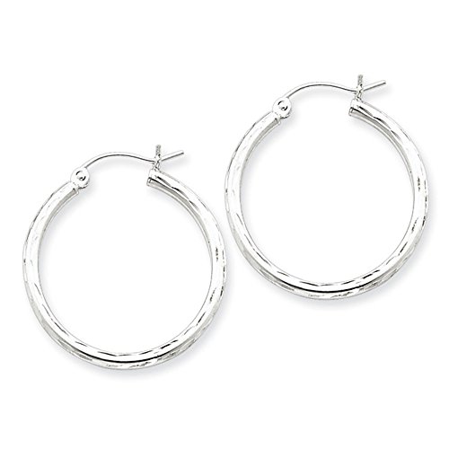 Everything about these 925 sterling silver hoop earrings is classic, from the polished sterling silver, to the seamless hoop, to diamond cuts to add sparkle, and to the easy to use hinge with notched post closures. Attention has been paid to every detail, to give you the best.