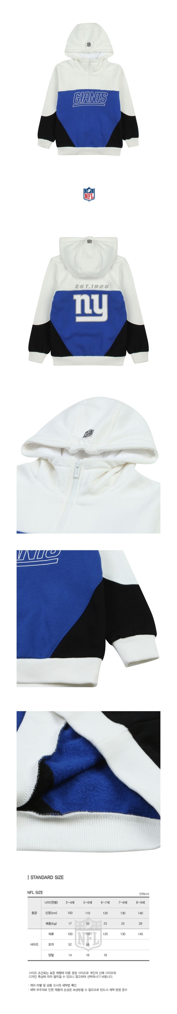 앞면의 로고나염과 뒷면의 마크, 레터링 나염이 포인트인 반오픈형 후드 티셔츠입니다.