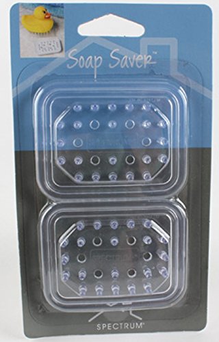 -. Binding : Kitchen -. Brand : Spectrum -. Color : Clear -. EAN : 0010591515500 -. Feature : Series of raised pegs on the bottom keep your soap from water and turning mushy / Prevents soapy water from spilling onto countertops and basins / Store and preserve your bars of soap / Size: (5/8" H x 2 7/8" W x 2 1/4" D) / Color: Clear -. Label : Spectrum Diverse Designs,LLC -. Manufacturer : Spectrum Diverse Designs,LLC -. Model : 51550 -. MPN : 51550 -. PackageQuantity : 2 -. PartNumber : 51550 -. ProductGroup : Home -. ProductTypeName : HOME -. Publisher : Spectrum Diverse Designs,LLC -. Studio : Spectrum Diverse Designs,LLC -. Title : Spectrum Soap Saver - Color: Clear - 2 Count -. UPC : 010591515500