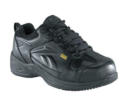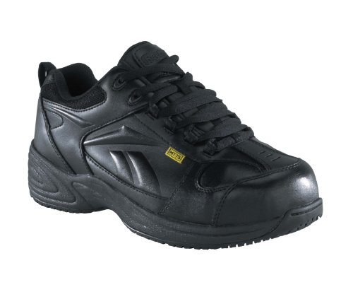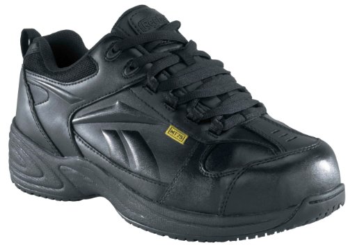 Studio : Reebok Publisher : Reebok Binding : Apparel Product Description Leather Street Sport Internal Met Guard Nylon Mesh Lining Removable EVA Cushion Insert with Sponge Rubber Heel Wedge EVA Cushion Midsole 100% Non-Metallic Flex-Met SureGrip Plus Rubber Outsole Composite Toe Rated F2413-05 Electrical Hazard Outsole Ratings: Slip - Best Oil - Best Metal Chips - Good Heat - Good Abrasion - Best Chemicals - Better RB1865 Reebok Men's Street Sport Safety Shoes - Black 0