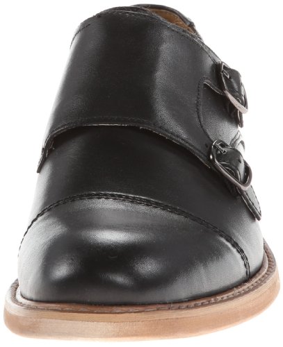 - Feature : Leather Upper / Manmade Sole / Monk Strap Closure With Two Buckles / Contrast Color Stacked Heel Height Measures Approx. 1 1/4" / Lightly Cushioned Insole For Added Comfort