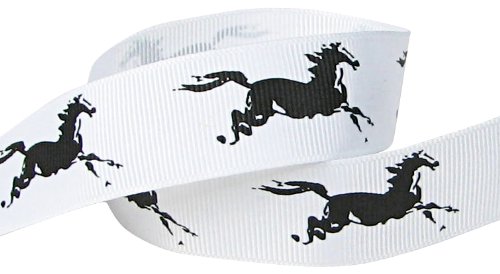 Hipgirl 5yd 7/8" Grosgrain Fabric Ribbon Horse, Cowgirl, Cowboy For Gift Package Wrapping, Hair Bow Clip Accessory Making, Crafting, Wedding Decor, Boy Girl Baby Shower, 5 Yard, White / Black