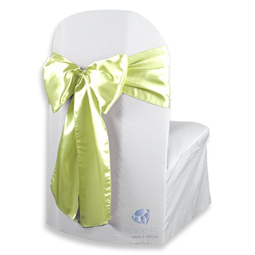-. Feature : This is a 100 Pack of Brand-New 108 inch by 8 inch premium Satin chair cover bow sashes. / Brand-new premium Satin chair sashes. Perfect for weddings, banquets, parties, receptions, or any place you wish to create an elegant look. / Easy to tie into a beautiful chair bow, drape across any decoration, or use as an attractive table runner. / 100% brand new, first run production. / Each chair bow arrives untied and carefully folded.