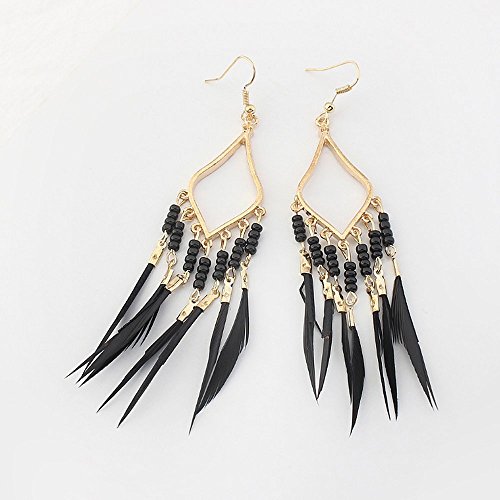 A&c Bohemia Feather Tassel Earrings for Women, Fashion Ear Drop for Girls. (Black)