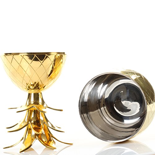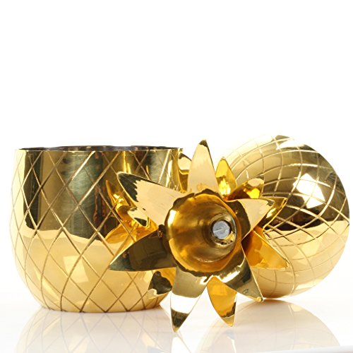-. Feature : Material: Solid brass. Sold individually / Capacity: 6.76 ounces / Koyal Wholesale vintage brass pineapples are hand made and feature shiny gold finish / Food and Drink Safe / Combine with our clear plastic scoops for a complete ice bucket set