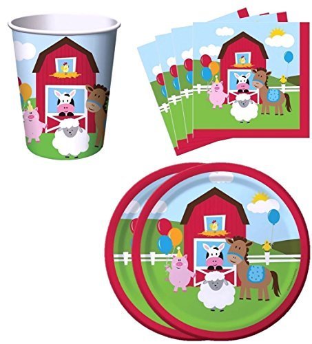 -. Title : Farm House Fun Barnyard Animals Birthday Party Supplies Set Plates Napkins Cups Kit for 16 by Creative Converting