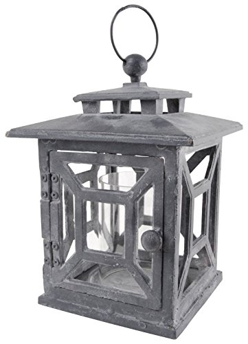 -. Feature : Traditional style cast iron square lantern / Victorian look with lead color finish / Includes hook for hanging