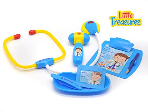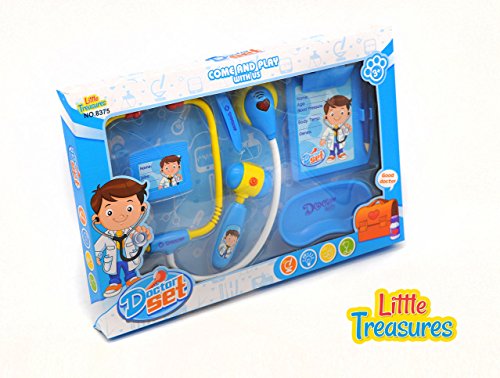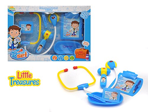 -. Title : Little Treasures Doctor set is - educational game for boys and girls of age 3+ toy set for the young practitioner with electronic stethoscope a medical report board doc's ID card and reflex hammer