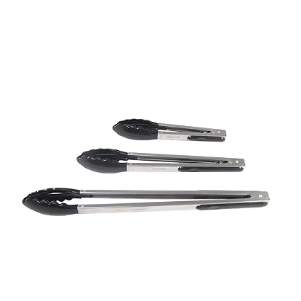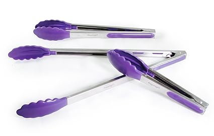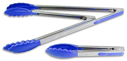 - CUSTOMIZE YOUR KITCHEN - Includes 3 sizes of tongs: Super Long Extended Reach 16" , Standard Length 12", and Mini Reach 9" in length - Choose from 6 colors: yellow, purple, black, green, blue, or red.