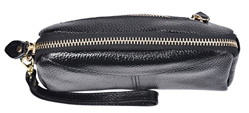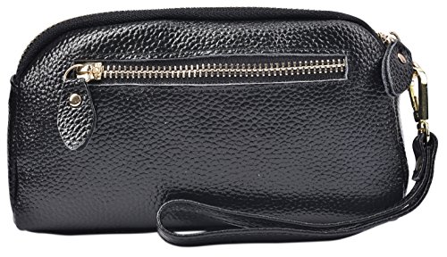 -. Feature : Material: 100% High quality genuine leather, soft hand feeling. Smooth metal zipper and hardware, no fade, no rust. / Size: 7.28" x 4.33" x 1.18"(18.5 x 11 x 3 cm). It is just the size for clutch wallet you can simply hold it on hand or put it in bag. / Construction: There are 1 big zippered pocket and 1 back zipper pocket. The wallet easily fits cash,bills,credit card,driver license,phones and coins. The clutch has 2 zipper pockets inside. / Zip Closure: The zippered closure keeps everything sealed and secure. The zipper is durable and easy to open and close. / Great Color Selection: We offer several colors to choose from, all kind of colors are beautiful and gorgeous, you can choose any color you like. There must be one fit you most.