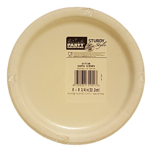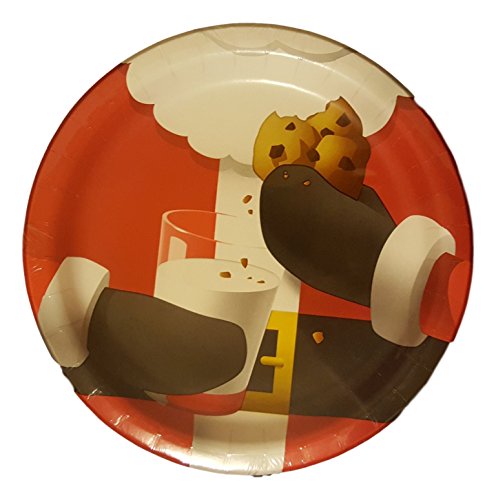 Party Creations Christmas Santa Clause Milk Cookies Dinner 9" Plates - 8 Count