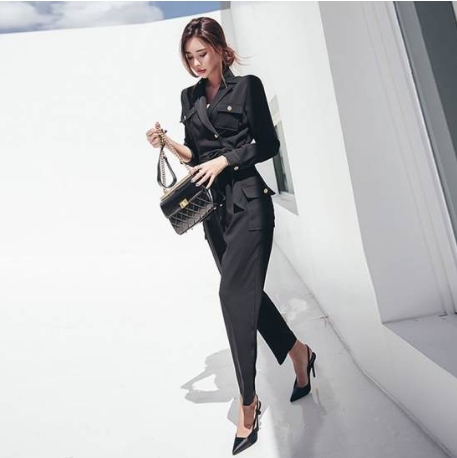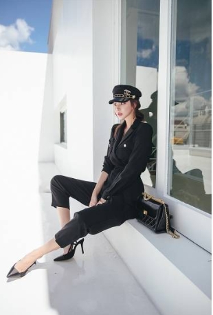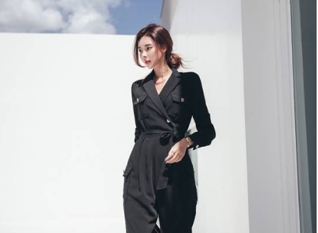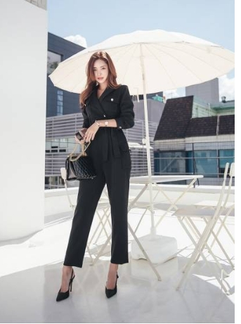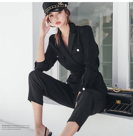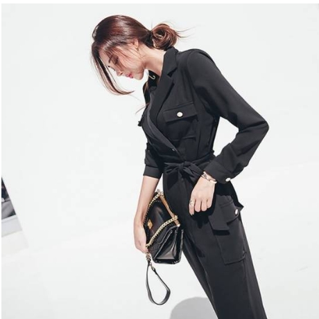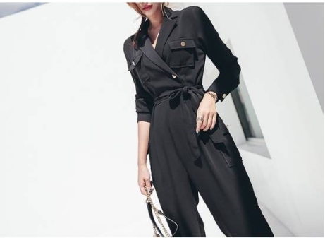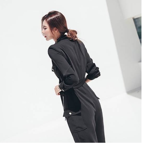 どこかマリンな印象のある、オールブラックのジャンプスーツです。
