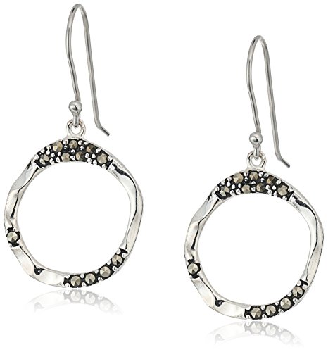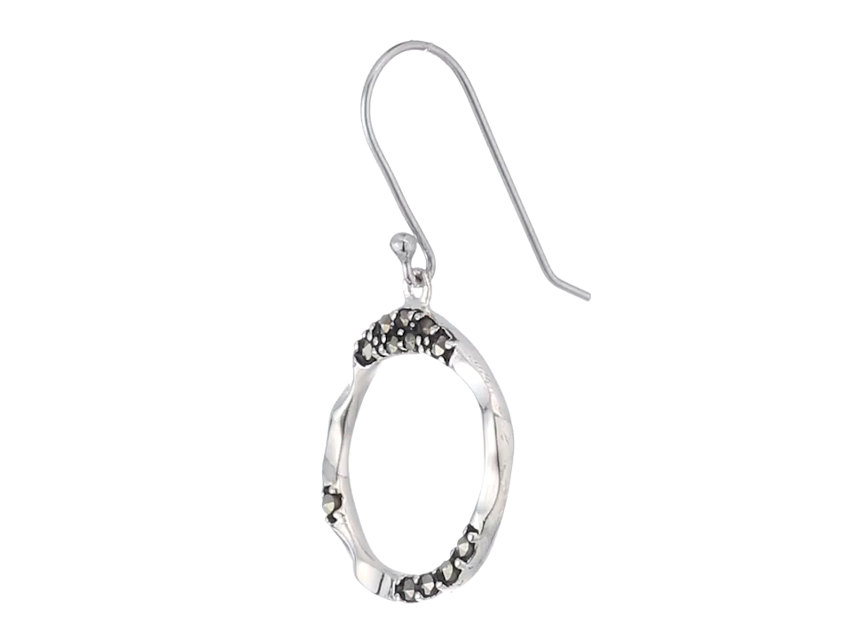 Sterling Silver Marcasite Wire Hoop Dangle Hoop Earrings