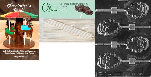 Cybrtrayd 'Silly Santa Lolly' Christmas Chocolate Candy Mold with 50 4.5-Inch Lollipop Sticks and Chocolatier's Guide