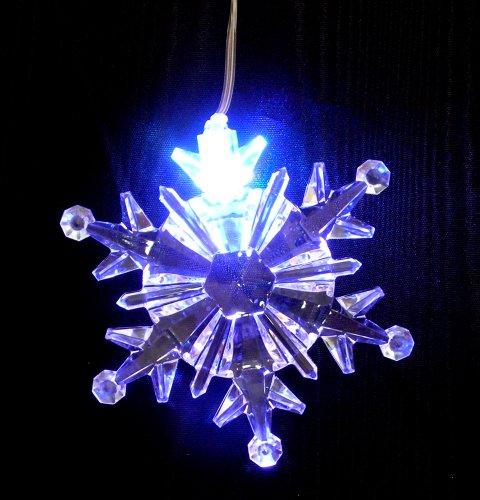 - Feature : Clear LED Snowflake Garland with 5 Color-changing Acrylic Lights spaced 9" apart / UNIQUE GIFT IDEA: give to mom, grandma, sister or friend to help decorate their home this holiday season. / DECORATIVE USE: Hang on the Christmas Tree, around a picture window in your house, living room, kitchen, etc. Each snowflake has a hook for hanging easily. Indoor use. / SIZE: Strand is 48" long (4 foot). Each acrylic snowflake is 4" Diameter. Each snowflake alternatively hangs either 11" or 14" / BATTERY POWERED: Unit is powered by 3 AA batteries (not included). On/Off Switch.