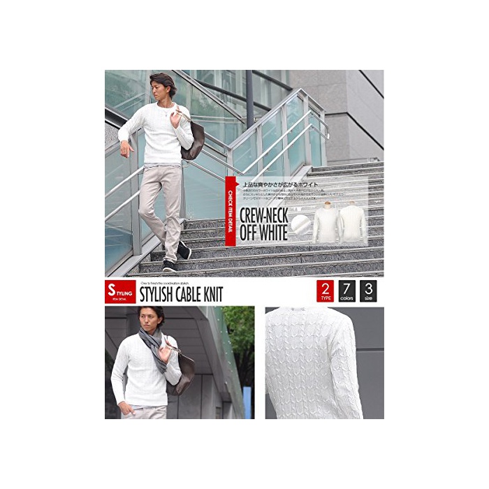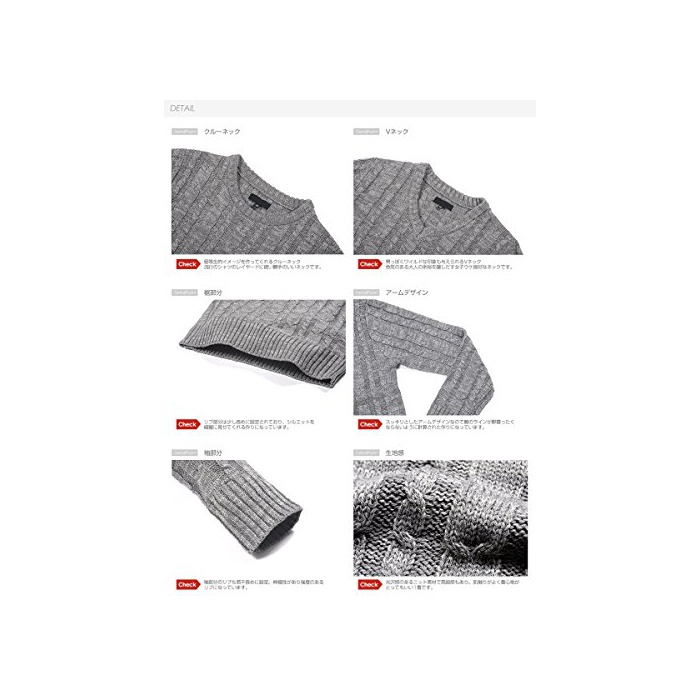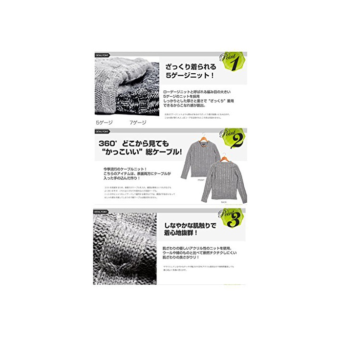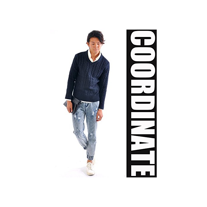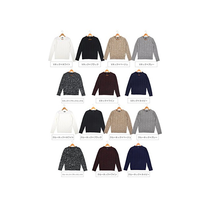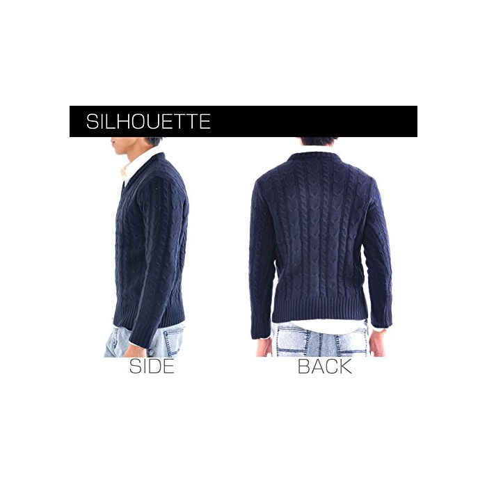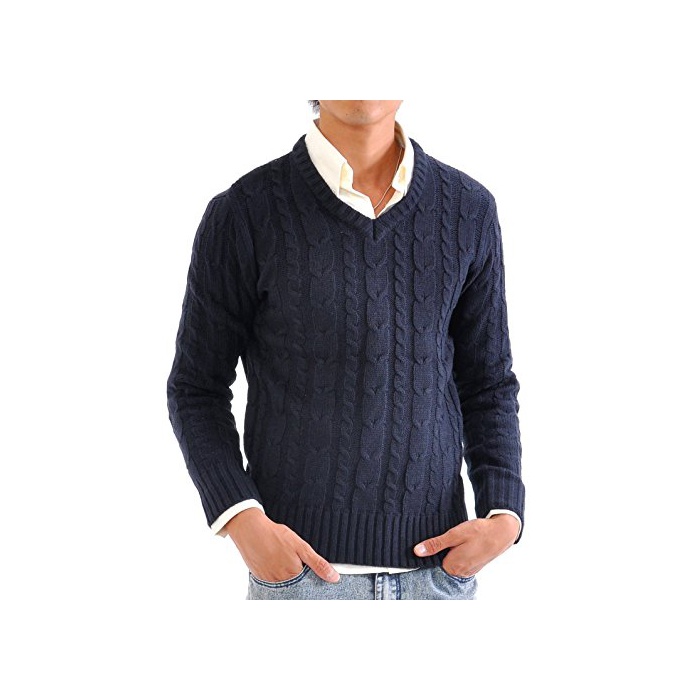 원본상품명: (スペイド) SPADE ニット メンズ カットソ セタ Vネック Uネック ケブル編み【q146】 (L, Vネック×ネイビ)