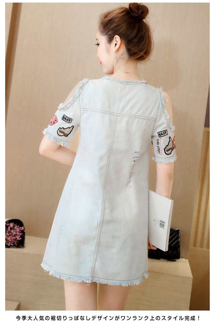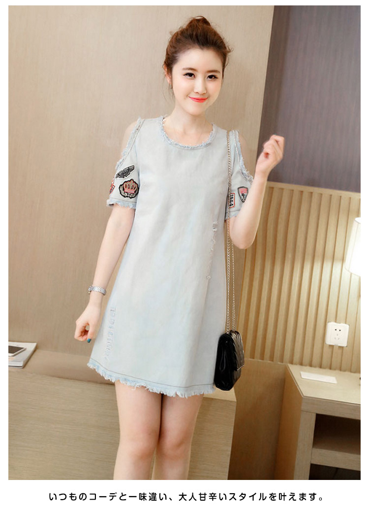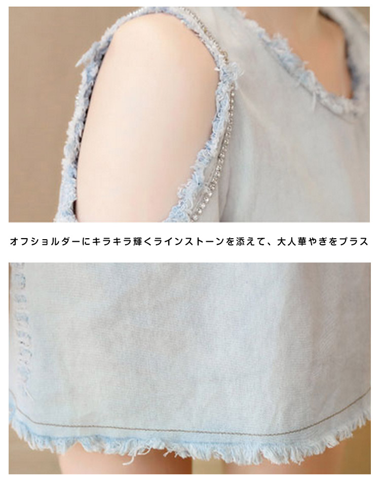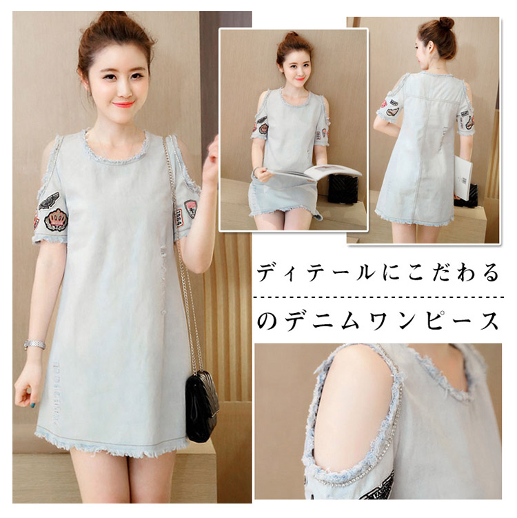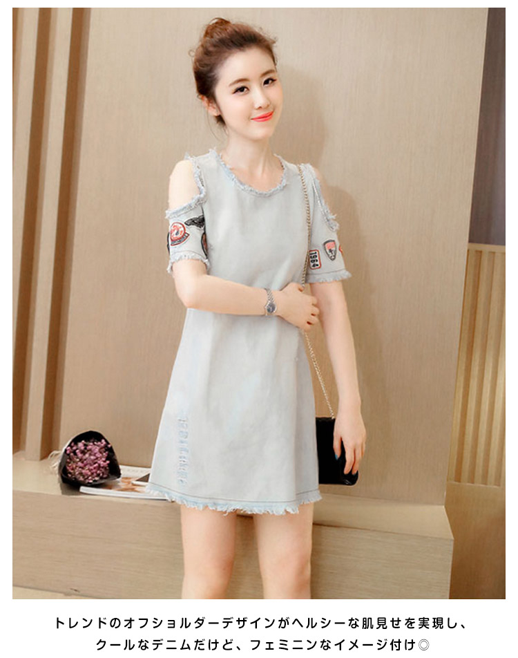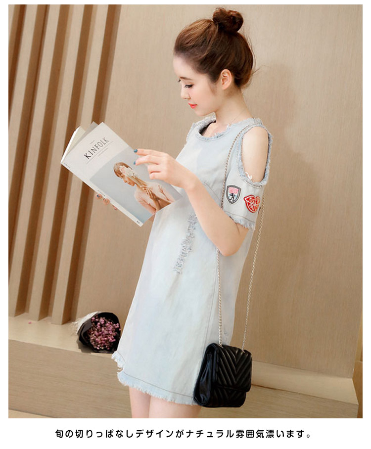 | ディテールにこだわるのデニムワンピーストレンドのオフショルダーデザインがヘルシーな肌見せを実現し、クールなデニムだけど、フェミニンなイメージ付け◎いつものコーデと一味違い、大人甘辛いスタイルを叶えます。旬の切りっぱなしデザインがナチュラル雰囲気漂います。今季大人気の裾切りっぱなしデザインがワンランク上のスタイル完成! | |