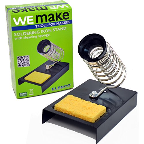 Standard issue Soldering Iron Holder for Pencil style soldering irons. Dual coiled springs to protect users and work from burns and damage. Sponge for tip cleaning. Metal base for stability and durability. For 30 years Elenco has been using their strong engineering and design skills to develop reliable, affordable electronic test equipment, tools, and educational kitsFeature