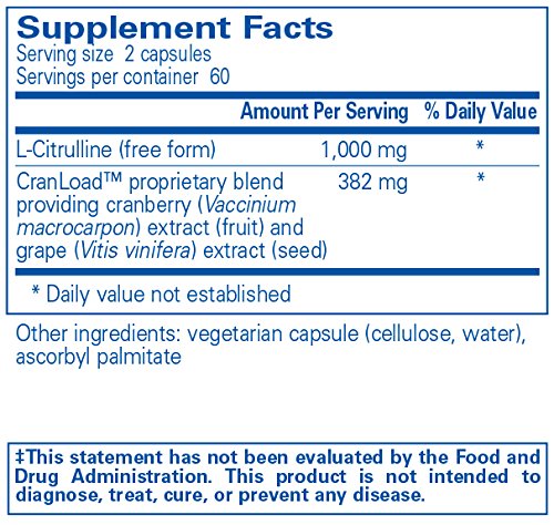 Nitric Oxide Ultra (capsules) offers a blend of CranLoadTM and citrulline to support healthy blood flow by targeting nitric oxide production and flow-mediated dilation. The formula centers around CranLoadTM, a novel fruit blend developed as part of an extensive research proGram with the Institute of Nutrition and Functional Foods (INAF) and Université Laval in Quebec, Canada. CranLoadTM delivers a unique cranberry and grape seed blend that has been the subject of several trials. Cranberries and grapes are particularly generous sources of proanthocyanidins and other polyphenols. In addition to being powerful antioxidants, these compounds offer specific vascular support mechanisms that are associated with enhanced endothelial function. Research indicates that CranLoadTM provides statistically significant support for healthy flow-mediated dilation (FMD), an effect similar to arginine administration. FMD reflects blood vessel dilation mediated by nitric oxide synthase (NOS), an enzyme that generates the endogenous vasodilator, nitric oxide. In one study, the peak increase in brachial artery diameter following CranLoadTM supplementation was 2.8% at 60 minutes. A similar physiological effect has been demonstrated with arginine. Citrulline is included to support nitric oxide production in the blood vessel endothelium and other tissues. Research indicates that citrulline increases plasma arginine in a dose dependent manner and to a greater degree than arginine supplementation.Feature