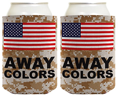 Patriotic Beer Coolie Away Colors American Flag Desert Camo 4th of July 2 Pack Can Coolies