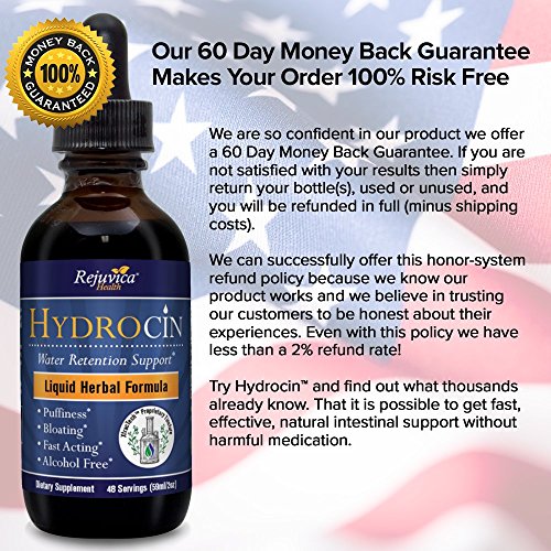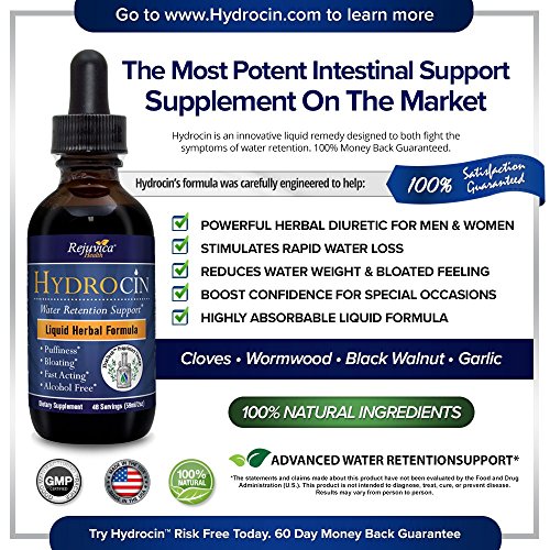 Studio : Rejuvica Health Publisher : Rejuvica Health Binding : Health and Beauty Product Description Hydrocin is an all-natural herbal supplement to help support healthy fluid balance. When your body holds on to too much fluid, you may experience some uncomfortable side effects like bloating and weight gain. Hydrocin was designed by a trained herbalist and contains seven well-studied remedies to help promote healthy and comfortable fluid balance; Dandelion, Uva Ursi, Chanca Piedra, Juniper, Parsley, Celery Seed, and Green Tea. And instead of cramming all these ingredients into a capsule that was assembled somewhere in China, Hydrocin is an advanced liquid tincture made in America. Studies show that liquid supplements absorb more efficiently than pills and capsules, so with Hydrocin, you get the most out of our premium ingredients. More importantly, we don't believe in marketing a miracle cure no matter what. We're so confident you'll find what you're looking for with Hydrocin that we'll refund your purchase no-questions-asked (Even with this offer, our return rate is a low 2.1%) Take advantage of our low introductory price and 100% money-back guarantee today. 0