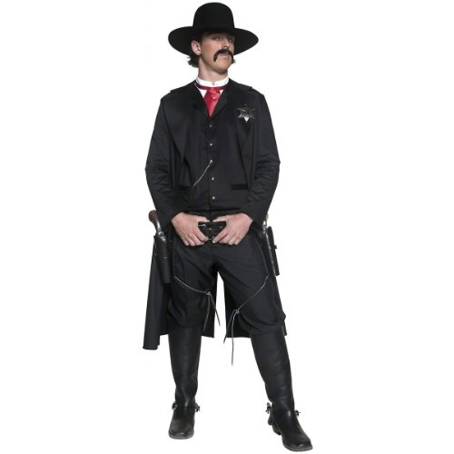 -. Binding : Apparel -. Brand : Smiffy's -. ClothingSize : Medium -. Color : Black -. Department : mens -. Feature : Includes jacket, top, dickey bow and badge / From our Smiffy's western range -. Genre : Historical -. Label : RH Smith & Sons LTD -. Manufacturer : RH Smith & Sons LTD -. MPN : 36156 -. PackageQuantity : 1 -. PartNumber : 36156 -. ProductGroup : Apparel -. ProductTypeName : ADULT_COSTUME -. Publisher : RH Smith & Sons LTD -. Size : Medium -. Studio : RH Smith & Sons LTD -. Title : Smiffy's Men's Authentic Western Sheriff Costume