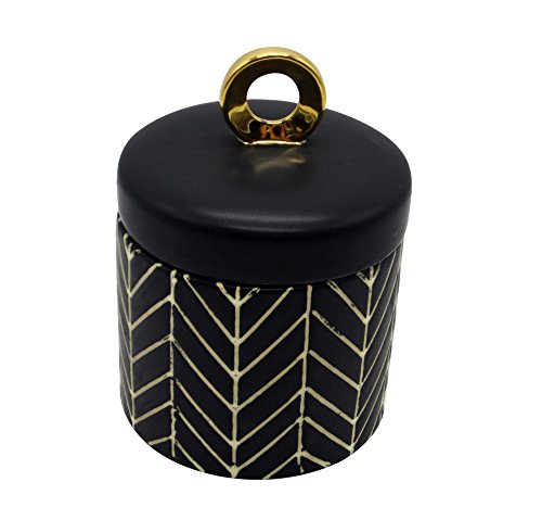 Sagebrook Home 12143-01 Decorative Ceramic Canister, 5" x 5" x 7", Black/Gold
