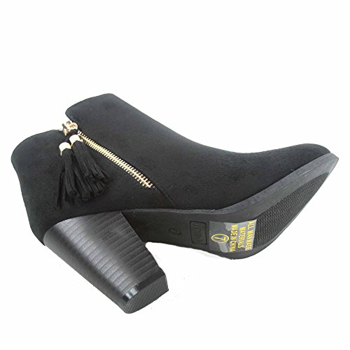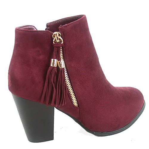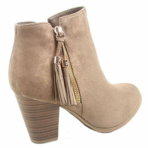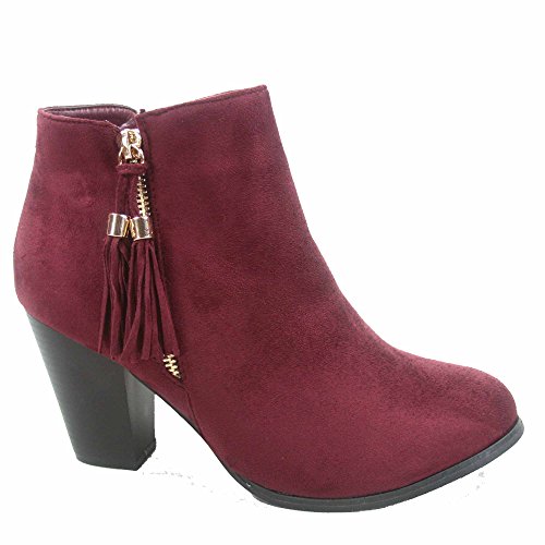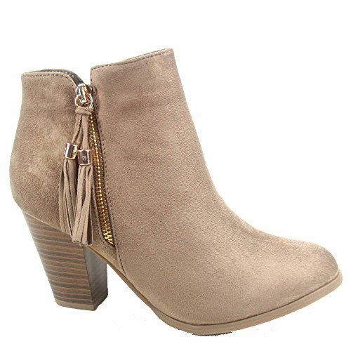 Top Moda Taurus-5 Women's Fashion Almond Toe Fringe Tassel Chunky High Heel Booites
