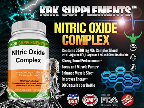 -. Title : 1 Bottle Nitric Oxide Complex 3500mg Per Serving L-Arginine HCL AAKG AKG Alpha Ketoglutarate Citrulline Malate 120 Capsules KRK Supplements