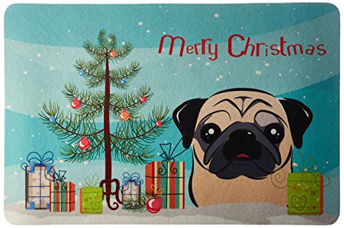 Caroline's Treasures BB1634CMT Christmas Tree and Fawn Pug Kitchen or Bath Mat, 20 by 30", Multicolor