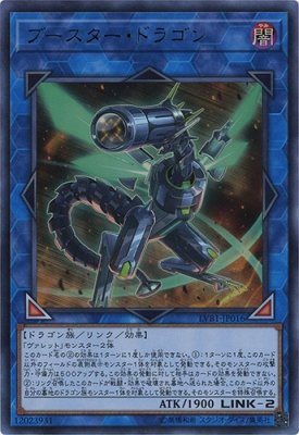 -. Feature : 遊戯王 / LINK VRAINS BOX / ★遊戯王VRAINS 「LINK VRAINS BOX」(LVB1)収録 ■カード名:ブースター・ドラゴン 【リンク・効果モンスター】ウルトラレア ■リンク2/闇属性/ドラゴン族/攻:1900/ ■【リンクマーカー:左下/右下】 「ヴァレット」モンスター2体 このカード名の(2)の効果は1ターンに1度しか使用できない。 (1):1ターンに1度、このカード以外の フィールドの表側表示モンスター1体を対象として発動できる。 そのモンスターの攻撃力・守備力は500アップする。 この効果の発動に対して相手はカードの効果を発動できない。 (2):リンク召喚したこのカードが戦闘・効果で破壊され墓地へ送られた場合、 このカード以外の自分の墓地のドラゴン族モンスター1体を対象として発動できる。 そのモンスターを特殊召喚する。 【ID:12023931】