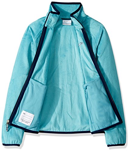 Columbia Little Kids and Big Kids Size Chart Columbia Infant and Toddler Size Chart The girls' Pearl Plush™ Fleece Jacket is the perfect, cozy layer for staying warm during outdoor activities on chilly days. Regular Fit is an easy, lightly relaxed fit for comfortable range of motion. Luscious Pile:• Fleece features a deep pile for a sublimely soft feel.• Fleece is brushed inside and out to improve warmth retention. Stand collar. Full-length zip. Raglan sleeves with elastic-bound cuffs. Zip hand pockets. Straight hem with elastic binding. Logo embroidery at the chest. 100% polyester;Pocket Bags: 100% polyester. Machine wash and tumble dry. Imported. Measurements: Length: 23 1⁄2 in Product measurements were taken using size MD (10-12 Big Kids). Please note that measurements may vary by size.Feature