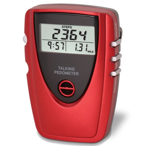 -. Title : Talking Voice Pedometer with Clock - Red - Count Your Steps and Distance While Exercising