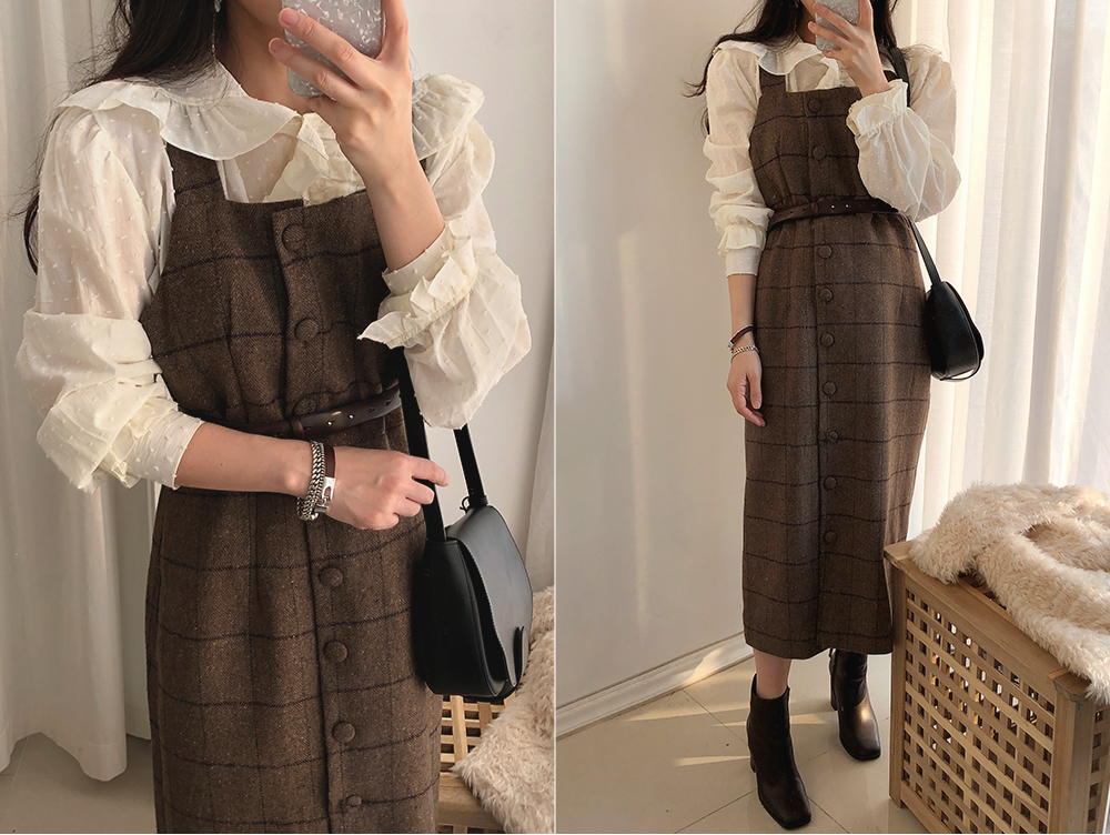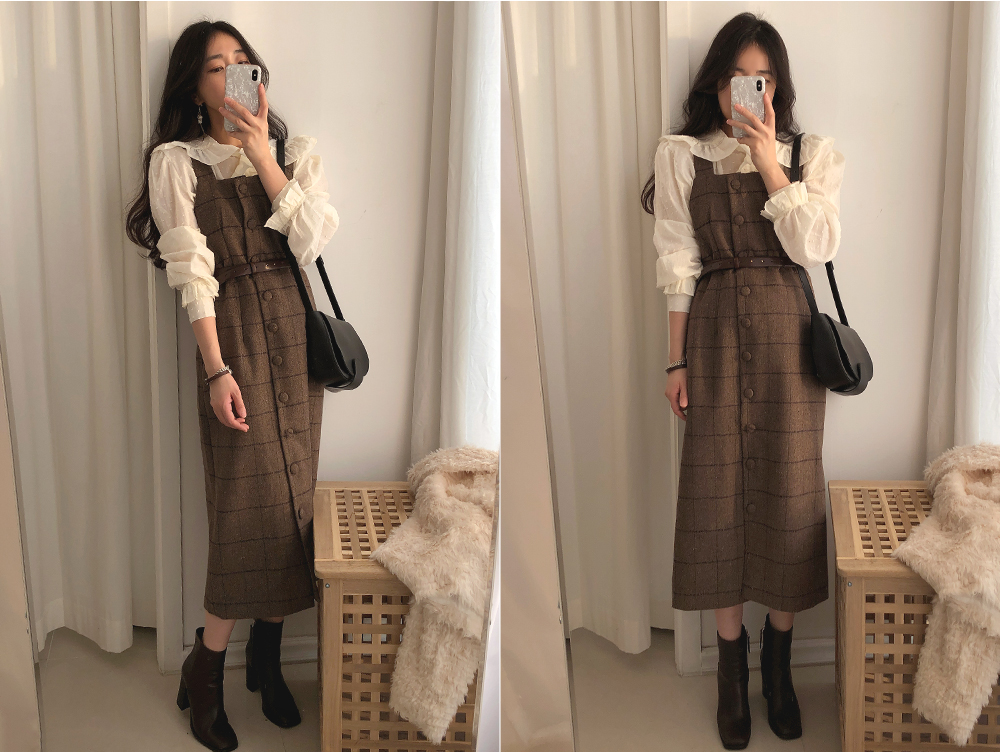 멜빵, 뷔스티에 모직 롱원피스로 강추해드려요.