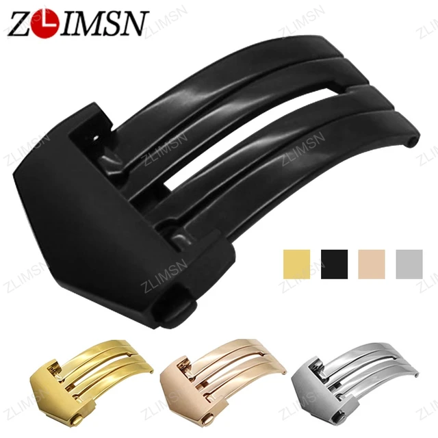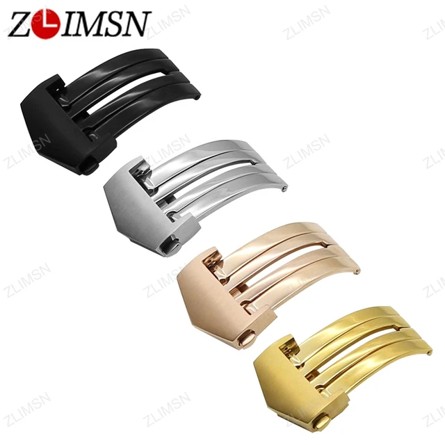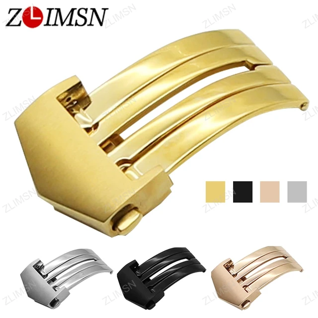 ZLIMSN 자동 더블 버튼 나비 버클 골드 블랙 실버 316L 스테인레스 스틸 배포 걸쇠 손목 남성 여성