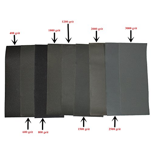 - Includes 4 sheets 400-grit sandpaper & 2 sheets of each grit: 600 / 800 / 1000 / 1200 / 1500 / 2000 / 2500/ 3000, total 20 sheets.