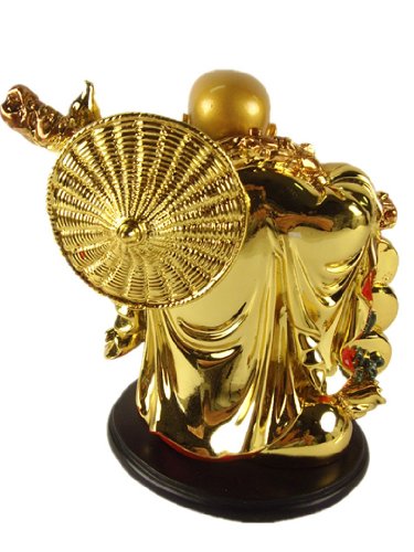 Feng Shui Golden Laughing Happy Buddha holding Ingot Statue Decoration with Betterdecor Charm