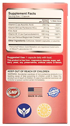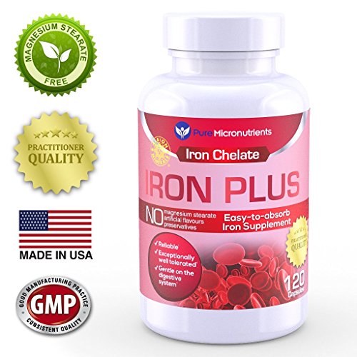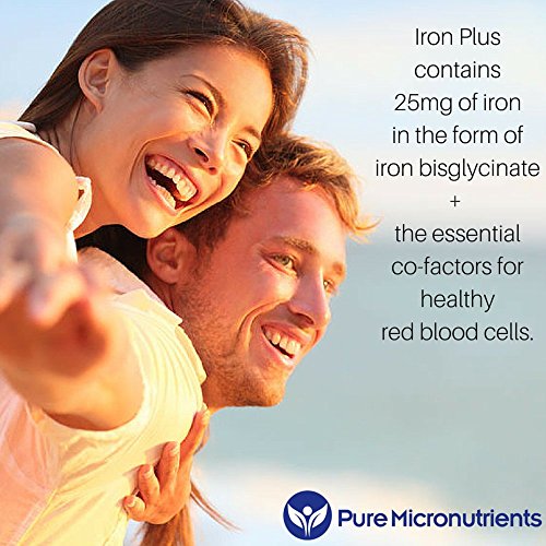 -. Binding : Health and Beauty -. Color : Red, White -. EAN : 0784672302173 -. Feature : Made in USA. Practitioner Quality Natural Iron Supplement formula with Vitamin C, B6, 12 & folic acid. Clinically Proven to be a Highly Absorbable form of iron†. / Iron Chelate Supplement (iron bisglycinate) is a small, easy to swallow, gentle ferrous iron / NO Magnesium Stearate, Dye, Preservatives or artificial colors, gluten, yeast, starch or dairy and is NON-GMO / Perfect iron supplement for women, men, pregnancy/ lactation & elderly / Essential for healthy heart & blood cell formation, immune system, reproductive health, energy & cognitive function, heart palpitations and healthy skin & eyes†. Customer Promise - 60 day MONEY BACK GUARANTEE! -. Label : Pure Micronutrients -. LegalDisclaimer : We recommend that you do not solely rely on the information presented and that you always read labels, warnings, and directions before using or consuming a product. For additional information about a product, please contact the manufacturer. Content on this site is for reference purposes and is not intended to substitute for advice given by a physician, pharmacist, or other licensed health-care professional. You should not use this information as self-diagnosis or for treating a health problem or disease. Contact your health-care provider immediately if you suspect that you have a medical problem. †Information and statements regarding dietary supplements have not been evaluated by the Food and Drug Administration and are not intended to diagnose, treat, cure, or prevent any disease or health condition. Amazon.com assumes no liability for inaccuracies or misstatements about products. -. Manufacturer : Pure Micronutrients -. PackageQuantity : 1 -. ProductGroup : Health and Beauty -. ProductTypeName : HEALTH_PERSONAL_CARE -. Publisher : Pure Micronutrients -. Studio : Pure Micronutrients -. Title : Iron Plus: Natural Iron Supplement (Iron Chelate, Bisglycinate) 25mg, + Vitamin C, B6, B12, Folic Acid, 120 Count -. UPC : 784672302173