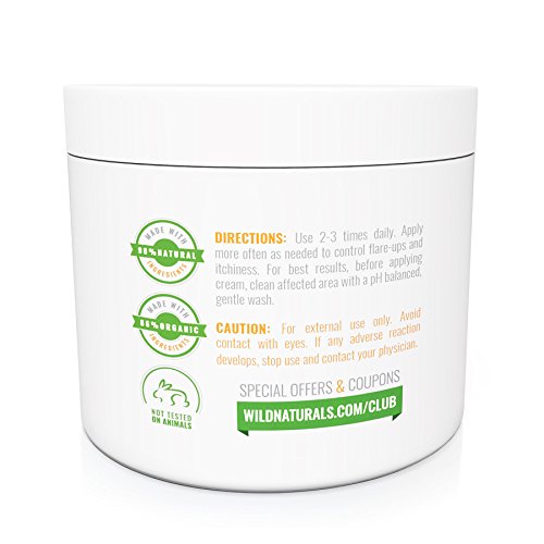 BE HAPPY IN YOUR OWN SKIN AGAIN - Wild Naturals lotion stops itching quickly, reduces pain, and promotes repair of damaged skin cells, without using a steroid treatment. Our potent ointment uses organic aloe vera as it's first ingredient, not water like most skin care products. Aloe is an anti-inflammatory and penetrates deep into skin to quickly calm and soothe cracked, flaky, inflamed, or itchy skin