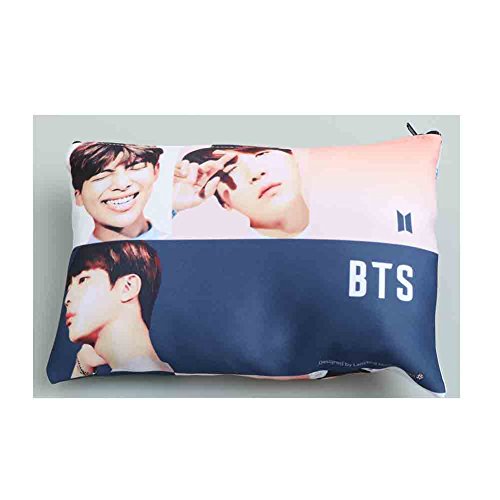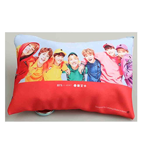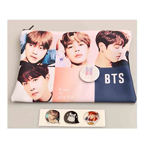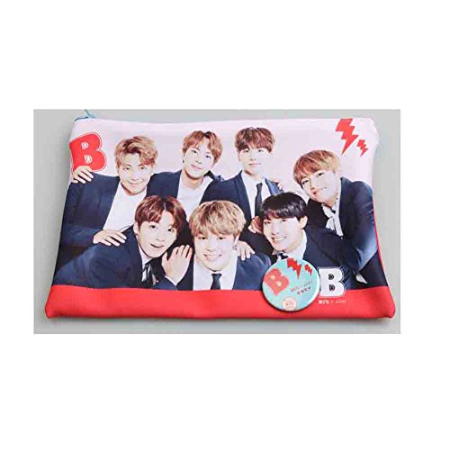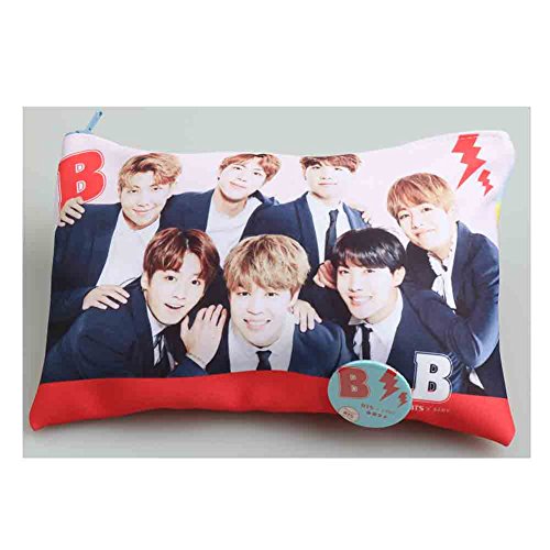 BTS Kpop Group Photo Pouch Pencil Case with Button Badge