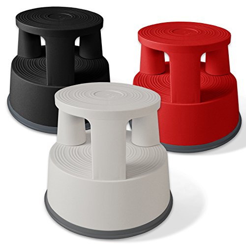 casa pura Black Kick Stool | Rolling Step Stool with Spring Loaded Wheels | Dent-Proof Polypropylene | 330 LBS Load Capacity